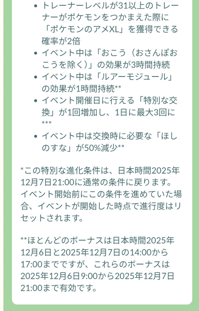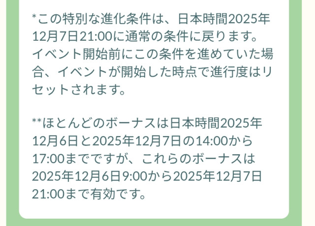 12/6(土)9時〜7(日)21時にも対象のポケモンが出現(色違いアップはなし)