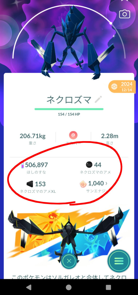 とりあえず月食ネクロズマ合体のボタンを押したら、エナジーがあと1000個必要ですと出ました。