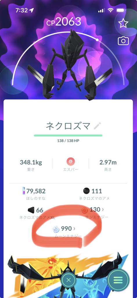 ネクロズマのムーンエナジーが今どのくらいあるのか、どこをどうやっても分からず、ネットで調べてもいまいちピンときません。