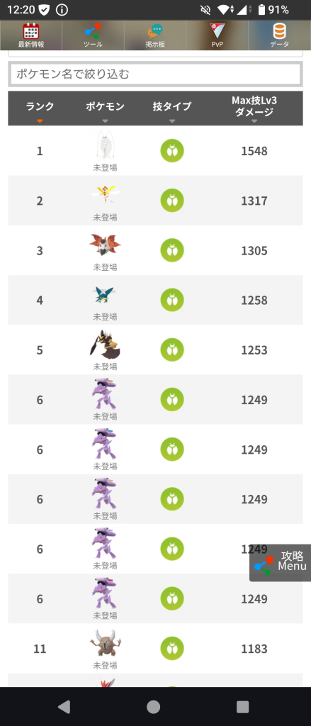 マックスバトルにおいて、各タイプのボスの攻撃に対する耐久力をランキング形式で掲載しています。耐久力の高いポケモンはマックスメーターを溜めるまでのタンク役として役立ちます。特定のポケモンに対するタンク役は、カウンターリストをご利用ください。