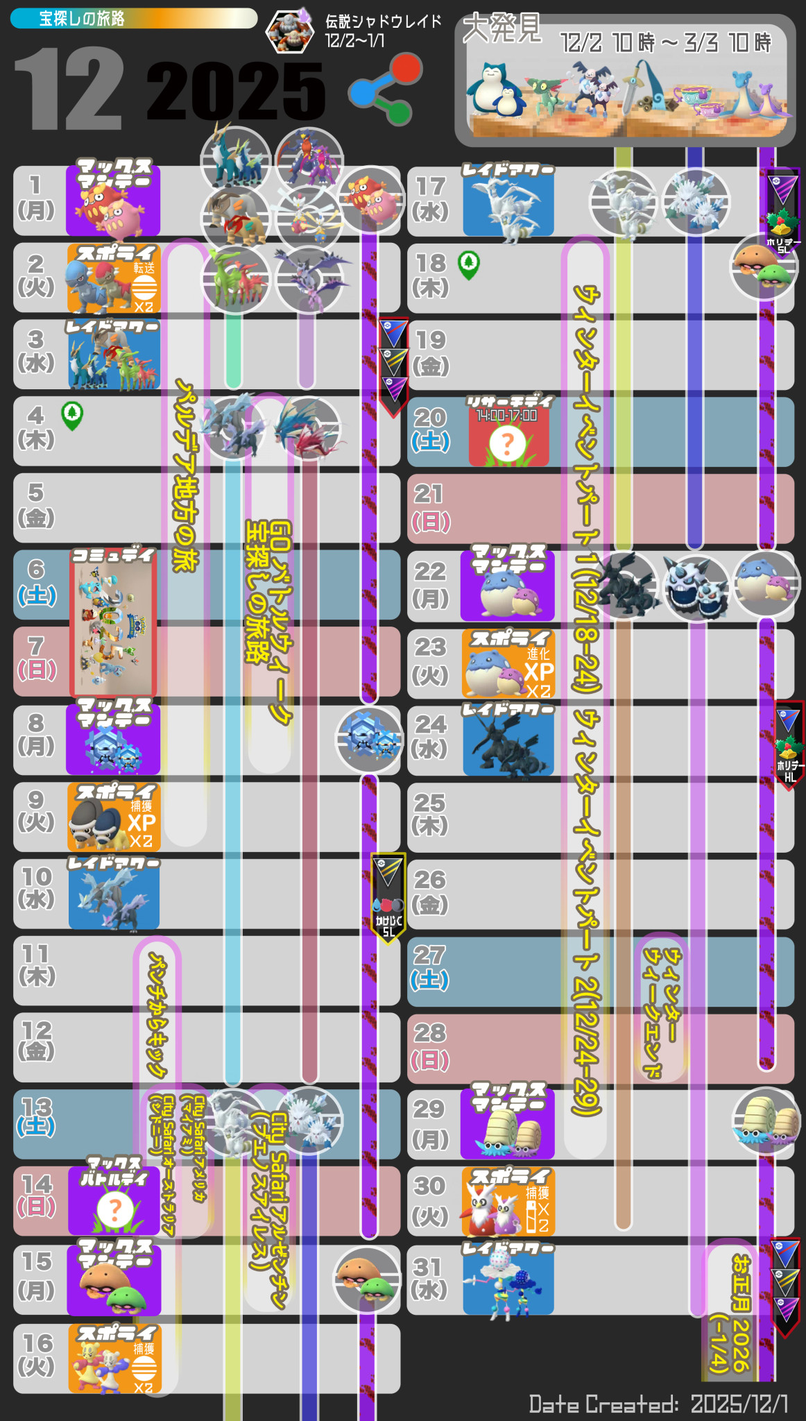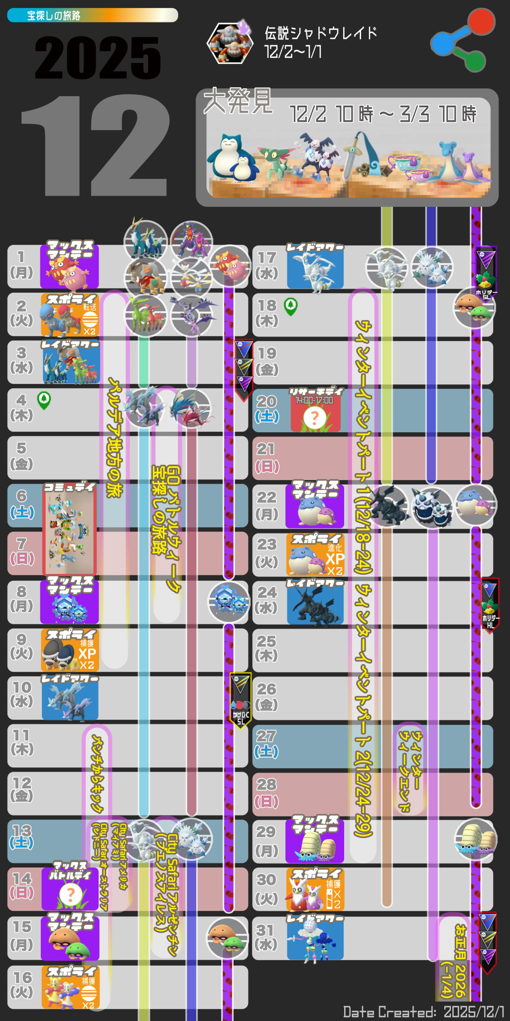 2025年12月のポケモンGOのイベント情報を掲載しています。大発見はシーズンページに移動しました。