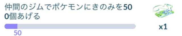 | 仲間のジムでポケモンにきのみを500個あげる | ![]() | x1 |