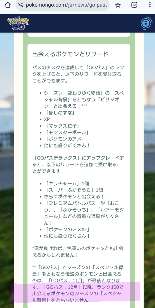 「GOパス:12月」で「パルキア」や「ジゲンふかそうち」が再び登場