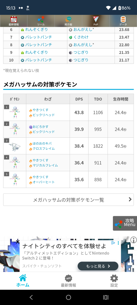 | 通 常 | 1 34(641)![]() サイコカッター シャドーレイ* | 2 33(920)![]() かみつく ぶんまわす* | 3 33(603)![]() シャドークロー シャドーレイ* | 4 32(581)![]() マッドショット ねっさのあらし* |
