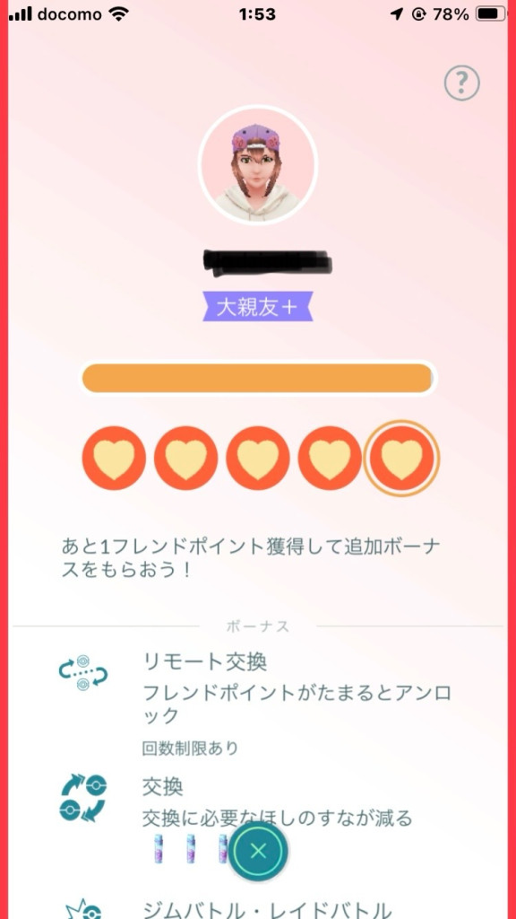 | ギフト交換、フレンドバトル(PvP)、ポケモン交換、レイド招待が可能に | |