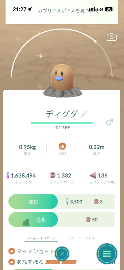 | ポケモンを15匹捕まえる | ![]() | ディグダ |