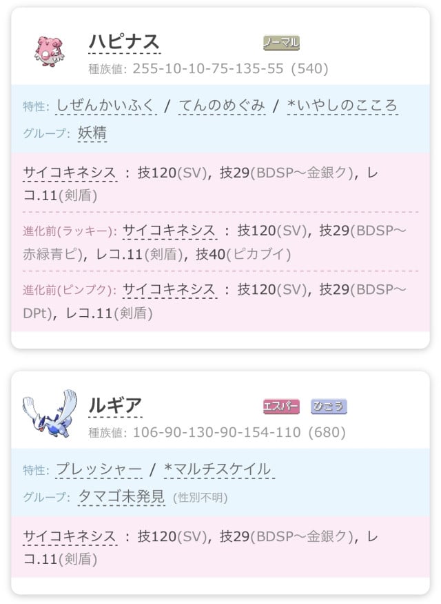 ねんりき サイコキネシス | かくとう技に耐性を持つが、耐久力が低い。単エスパータイプであれば、ソーナンスやムシャーナを置いた方が良い。ただし、ブイズジムでは優先的に配置して問題ない。 |