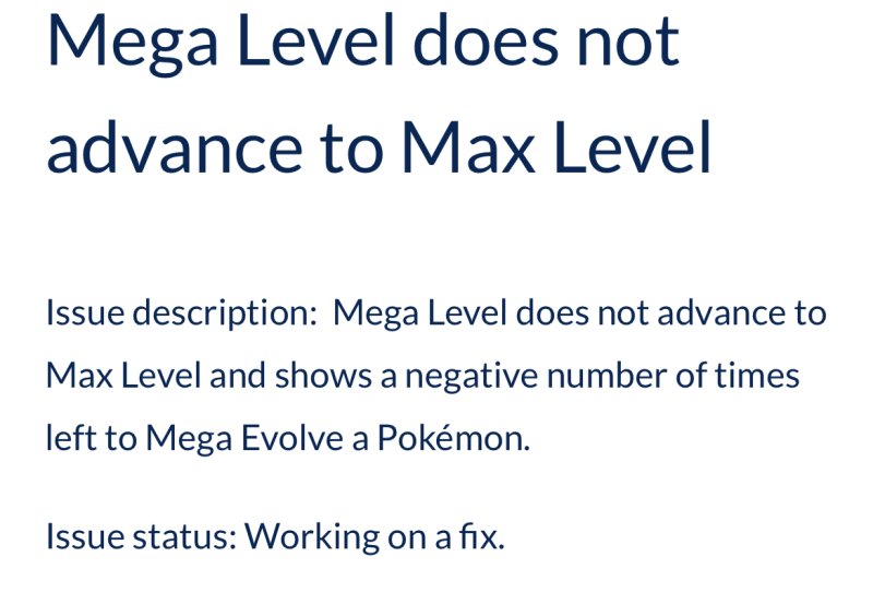メガレベルが最大レベルまで上がらず、さらにポケモンをメガシンカできる残り回数がマイナス表示されてしまう不具合が発生し、修正対応中です。