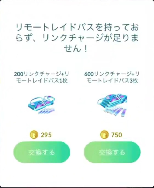 - 200リンクチャージ+リモートレイドパス1枚で295ポケコイン