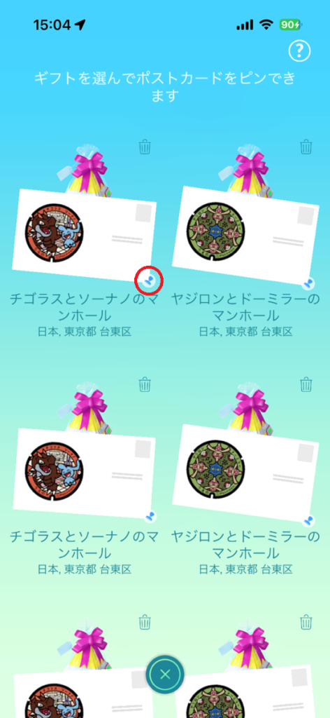 3「ポストカード」が表示されるので、右下のスタンプアイコンをタップして「GOスタンプラリー」を開く