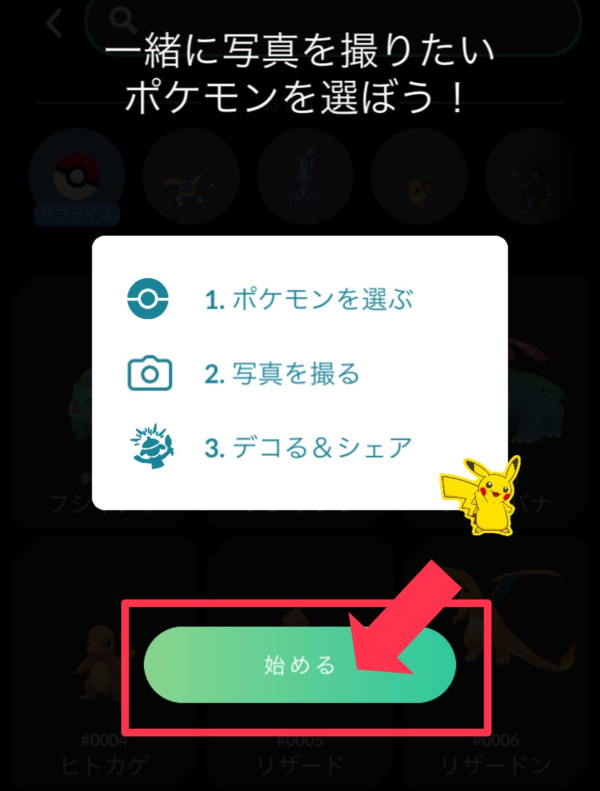③画面の指示に従いポケモンを選び写真を撮る