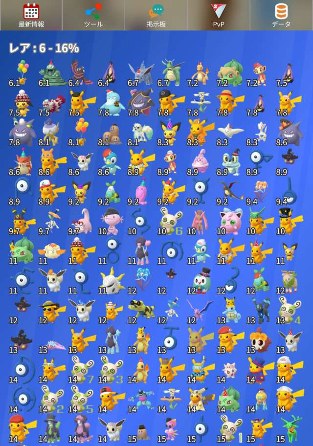 数値は所持率目安(ベビー以外の進化後とメガシンカを除外)