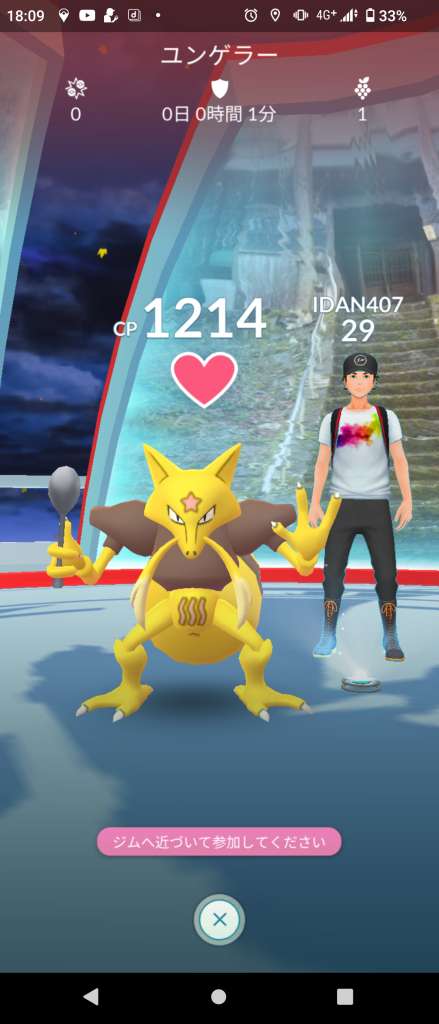 こいつのいるジムを落とすと10分経たずに落としにくる。