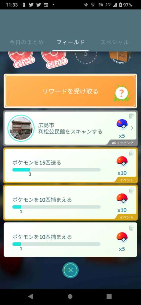 • ポケストップのフィールドリサーチは毎日0時に更新されます。