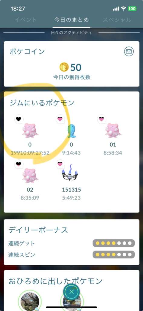 1時間前にジム配置したポケモンが元気が無いが、ジムまで飛んで行かない。