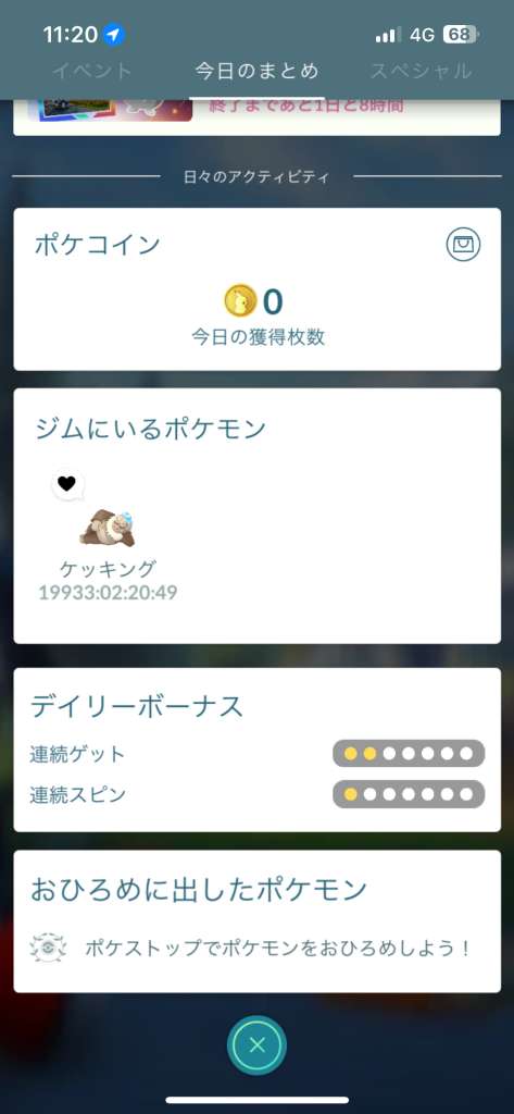 ジムに配置したポケモンに木の実を投げるためにアクセスすると「このジムは準備中です」のコメントが出てフリーズする。