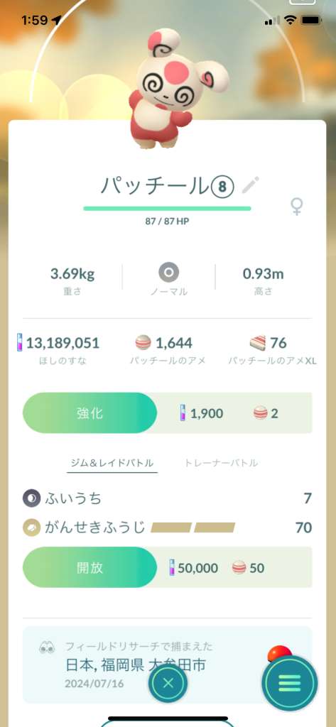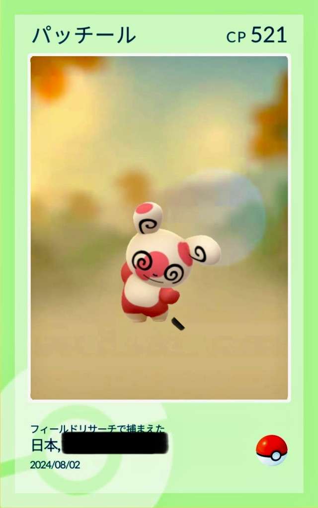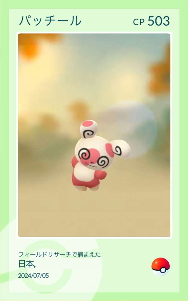 パッチールは野生では出現せず、フィールドリサーチの報酬でのみ入手可能です。また、毎月2日6時(アメリカ夏時間では5時)に模様が切り替わります。