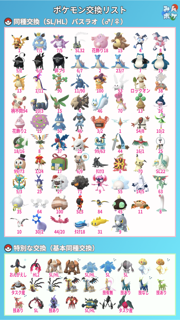 ●は100キラ、キラ図鑑埋め、アメXL目的等のため金曜日のみの交換とさせていただきます