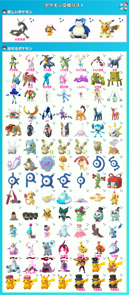 【大阪府】【京都府】4月2日(木)〜4月5日(日)、京都又は大阪付近で70体以上(京都は30体以上)の交換(非対面)を募集します。※キラ交換・色違い交換お約束の方は、単独交換可