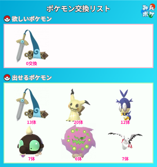 詳細なやり取り(TwitterIDなど):こちらの掲示板かキャンプファイア。特別交換も可能です。ミミッキュの相互交換を希望ですが、無理なら雑交換で大丈夫です。