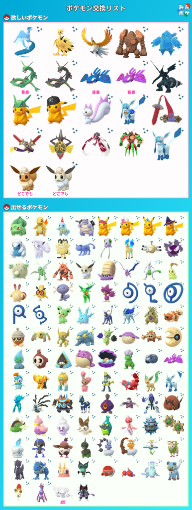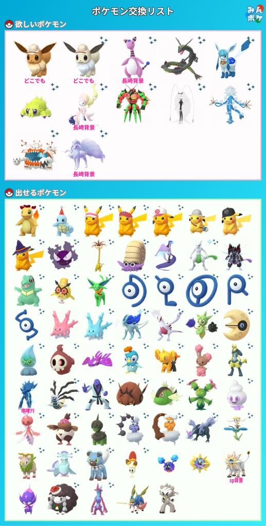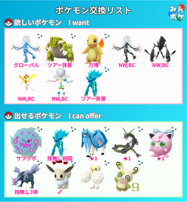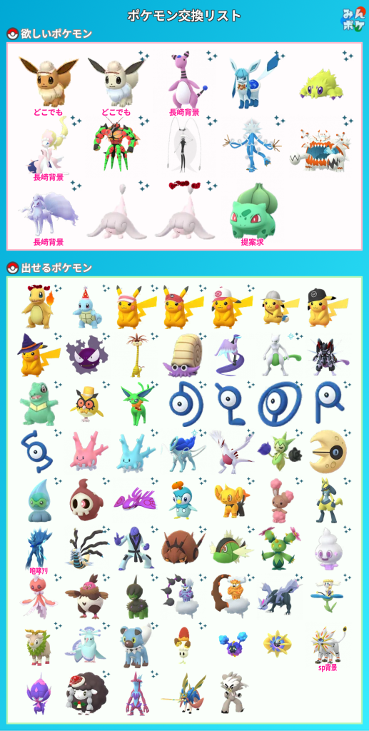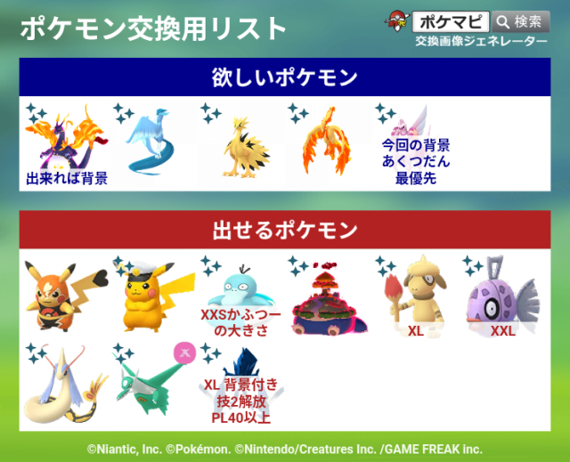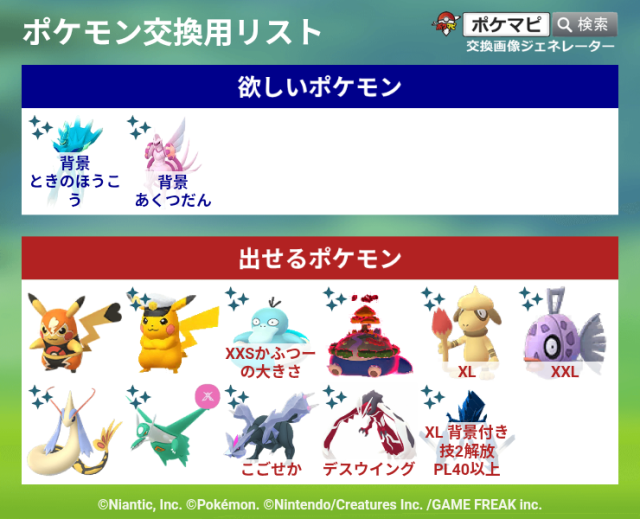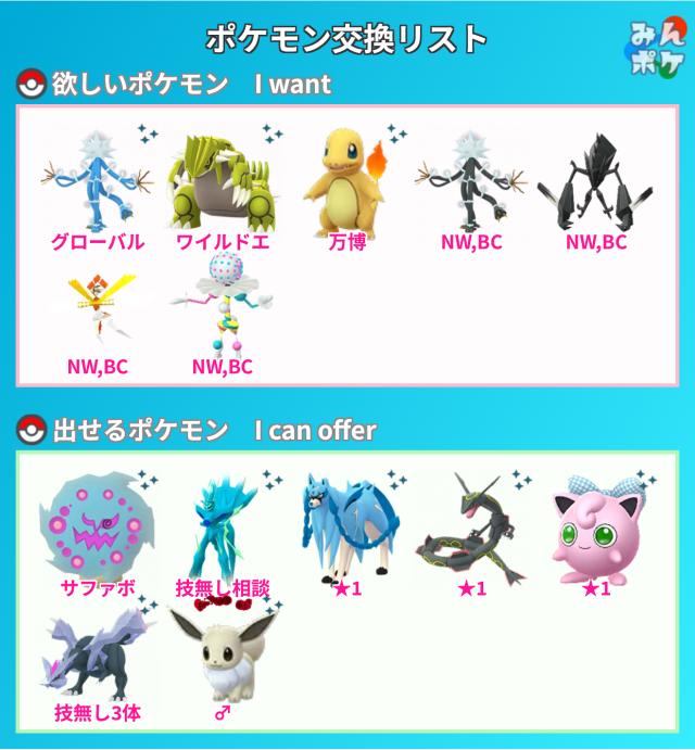 交換対象はポケモン同士のみとし、金銭やプロモーションコードなどポケモン以外の物やサービスを含めることを禁止します。投稿内容に都道府県を含めることで地域検索にヒットしやすくなります。