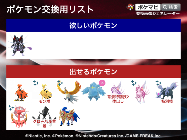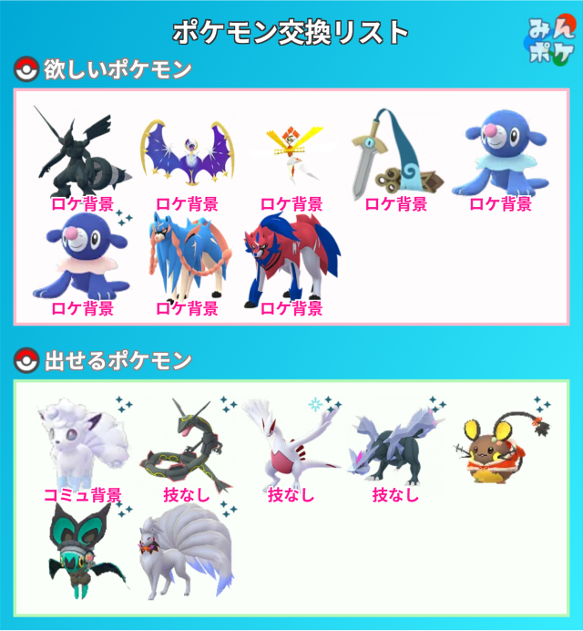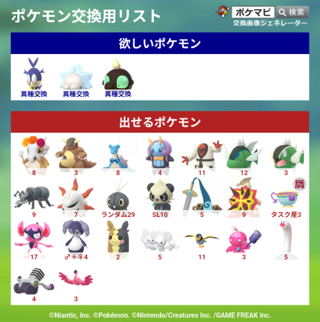 交換対象はポケモン同士のみとし、金銭やプロモーションコードなどポケモン以外の物やサービスを含めることを禁止します。投稿内容に都道府県を含めることで地域検索にヒットしやすくなります。