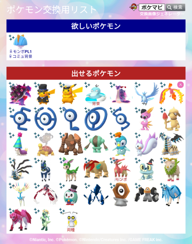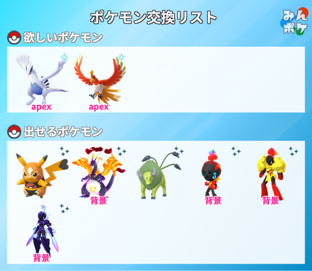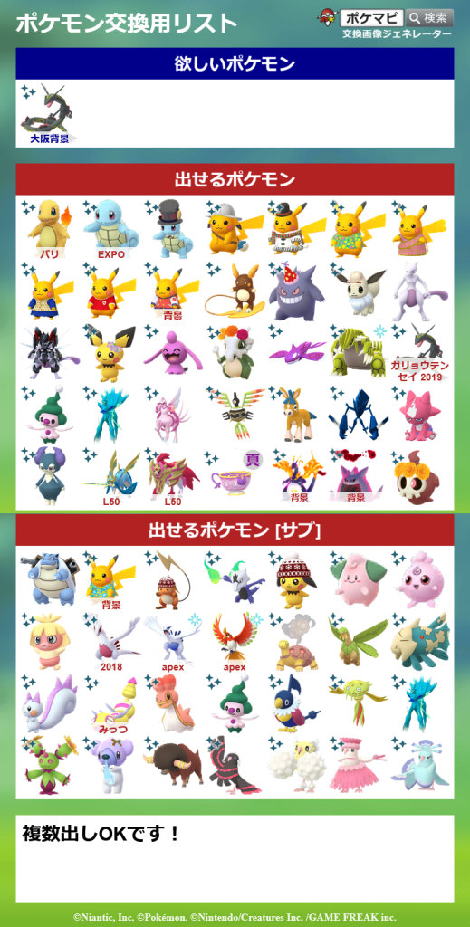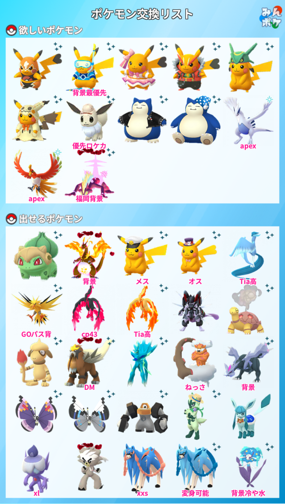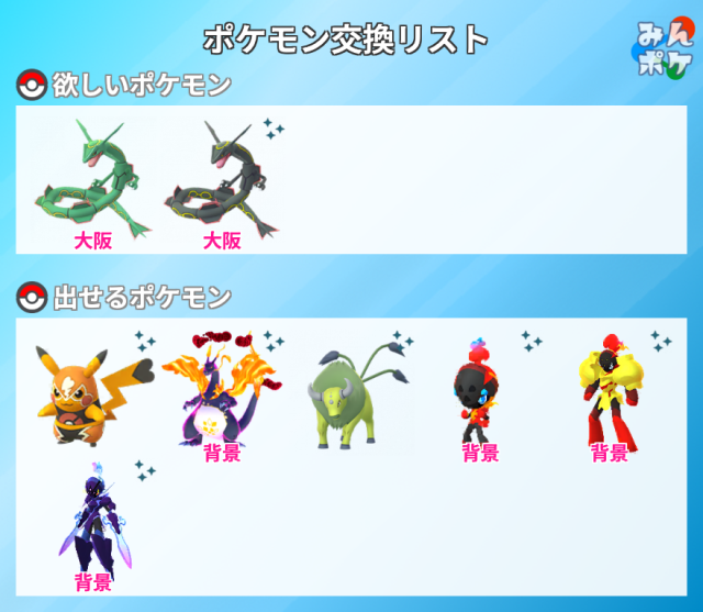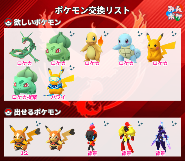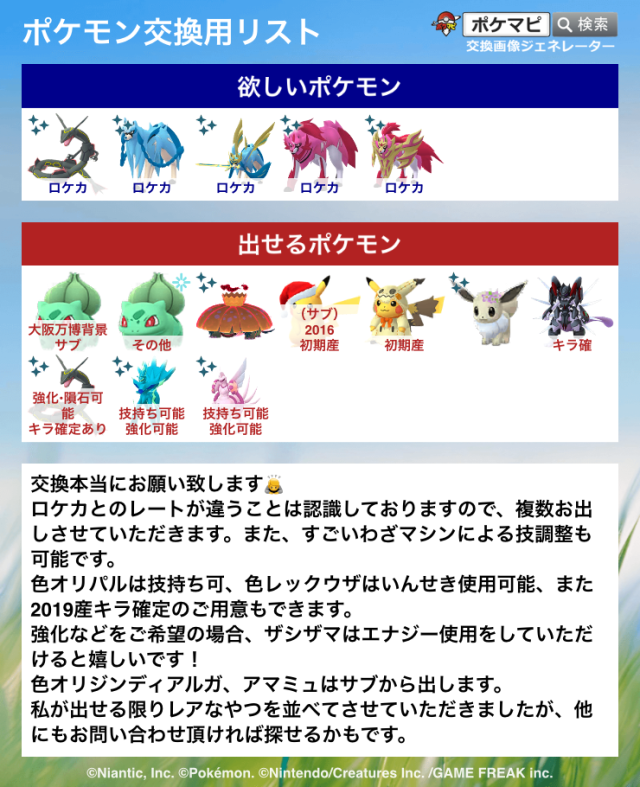 交換対象はポケモン同士のみとし、金銭やプロモーションコードなどポケモン以外の物やサービスを含めることを禁止します。投稿内容に都道府県を含めることで地域検索にヒットしやすくなります。