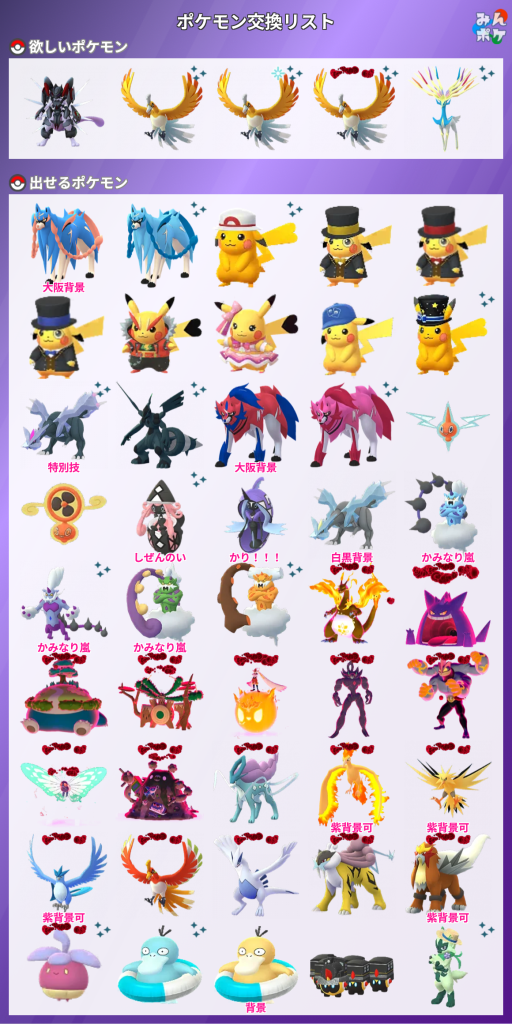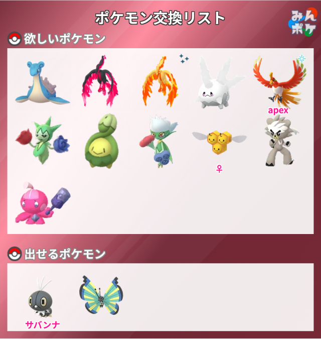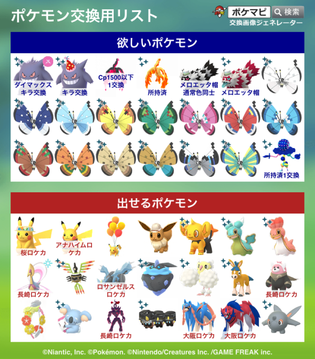 交換対象はポケモン同士のみとし、金銭やプロモーションコードなどポケモン以外の物やサービスを含めることを禁止します。投稿内容に都道府県を含めることで地域検索にヒットしやすくなります。