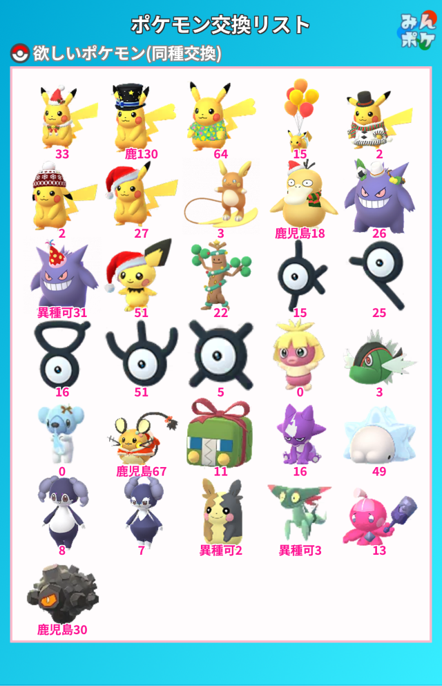 ポケモンGOでポケモンの交換相手を検索・募集するための掲示板です。