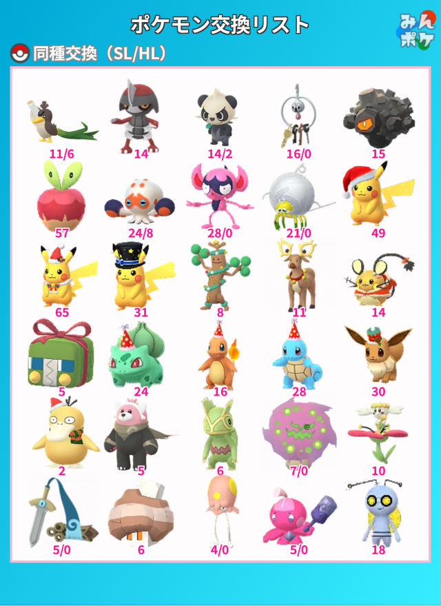 SL/HL形式で書かれてるポケモンは0.1交換、それ以外はCP不問です