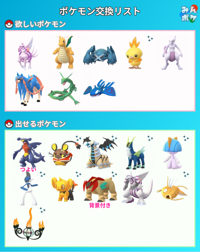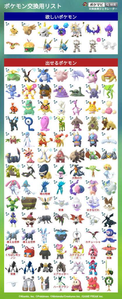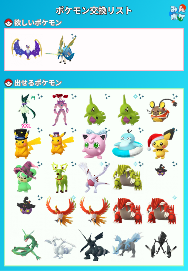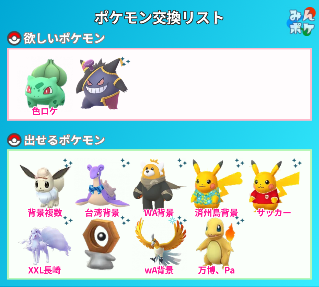 交換希望場所:新宿ポケモン広場、池袋、秋葉原など