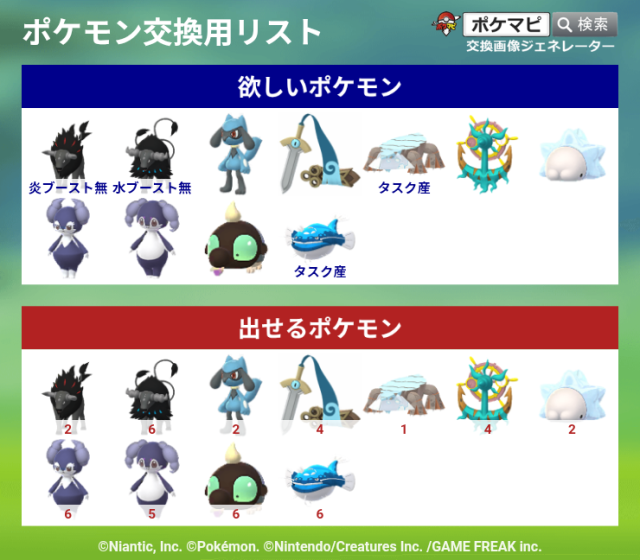 交換対象はポケモン同士のみとし、金銭やプロモーションコードなどポケモン以外の物やサービスを含めることを禁止します。投稿内容に都道府県を含めることで地域検索にヒットしやすくなります。