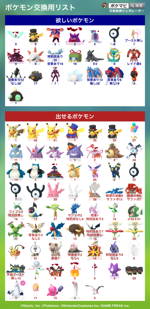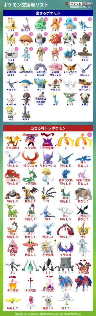 ポケモンGOでポケモンの交換相手を検索・募集するための掲示板です。