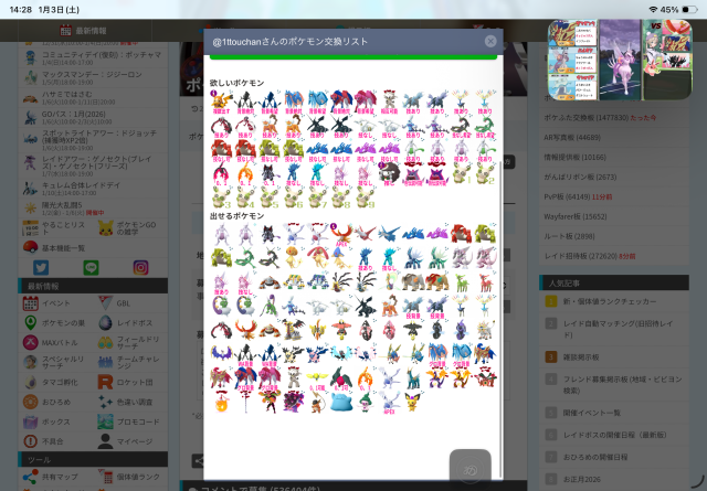 ポケモンGOでポケモンの交換相手を検索・募集するための掲示板です。