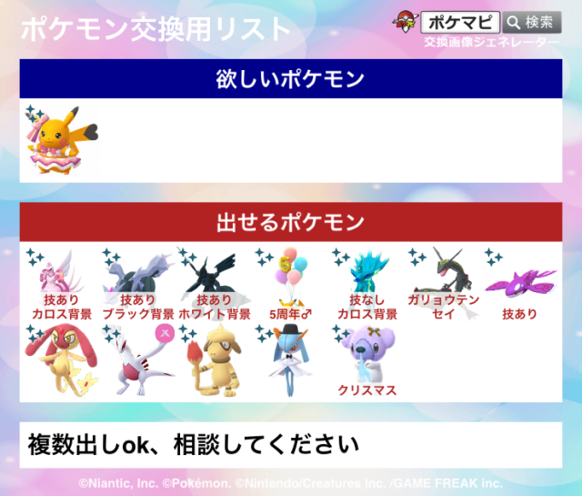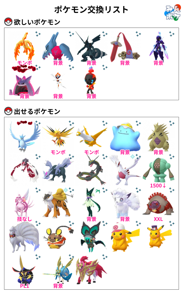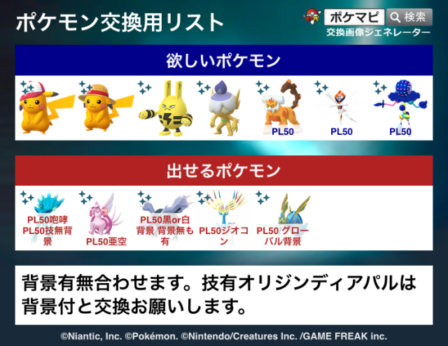 交換対象はポケモン同士のみとし、金銭やプロモーションコードなどポケモン以外の物やサービスを含めることを禁止します。投稿内容に都道府県を含めることで地域検索にヒットしやすくなります。