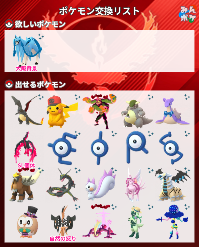 交換希望場所:大阪ポケセン、京都タワー付近、要相談