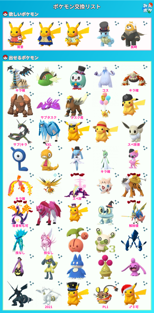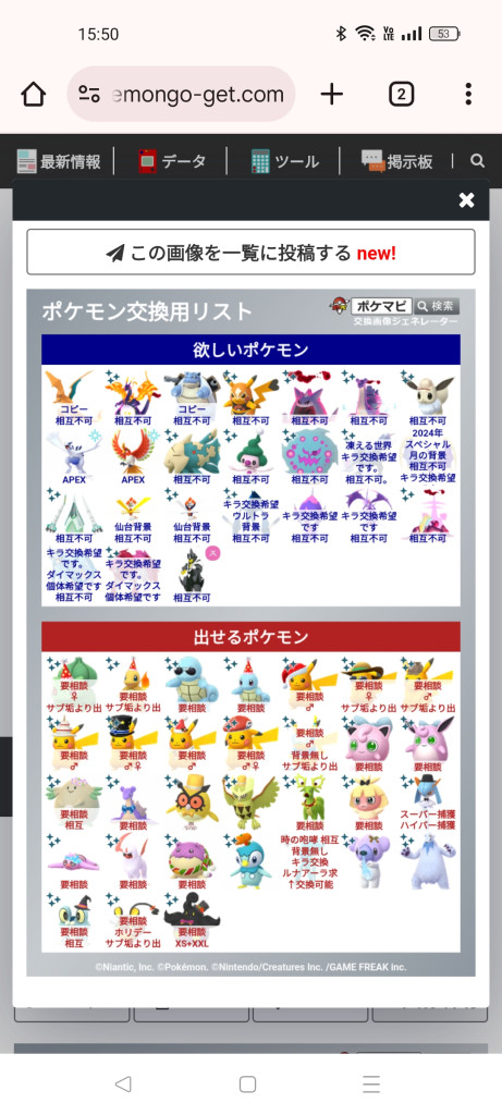 ポケモンGOでポケモンの交換相手を検索・募集するための掲示板です。