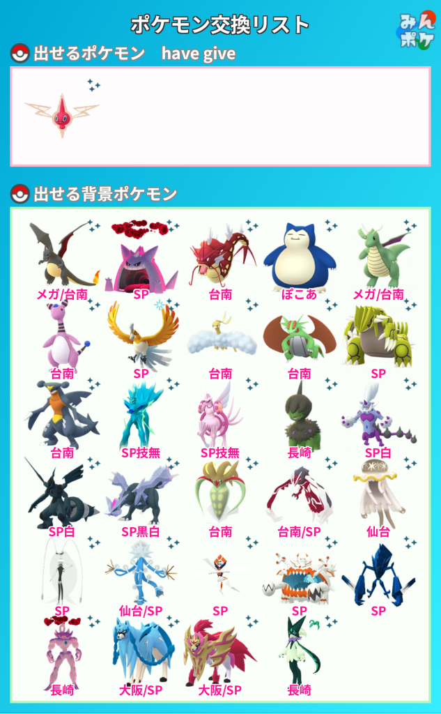 交換対象はポケモン同士のみとし、金銭やプロモーションコードなどポケモン以外の物やサービスを含めることを禁止します。投稿内容に都道府県を含めることで地域検索にヒットしやすくなります。
