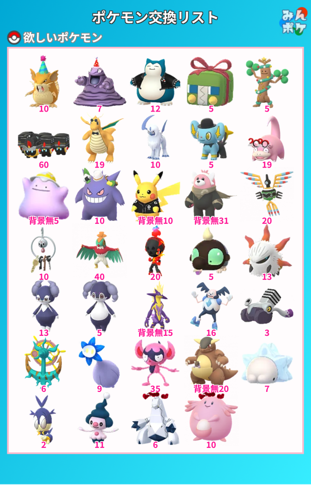 交換対象はポケモン同士のみとし、金銭やプロモーションコードなどポケモン以外の物やサービスを含めることを禁止します。投稿内容に都道府県を含めることで地域検索にヒットしやすくなります。