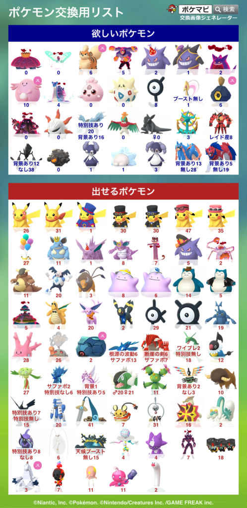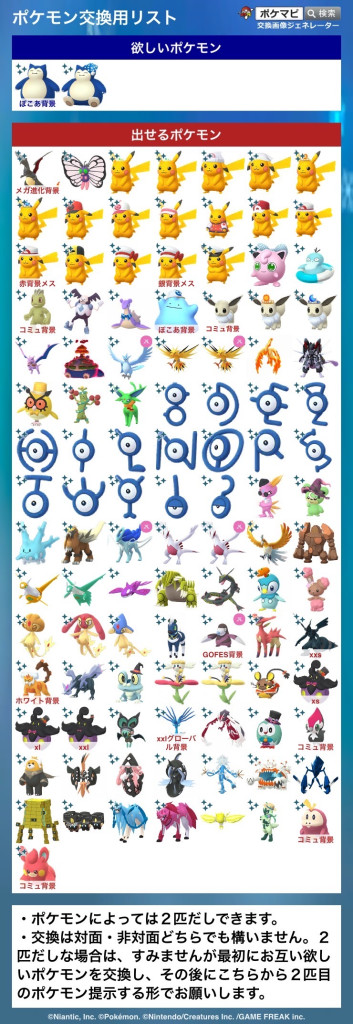 ポケモンGOでポケモンの交換相手を検索・募集するための掲示板です。