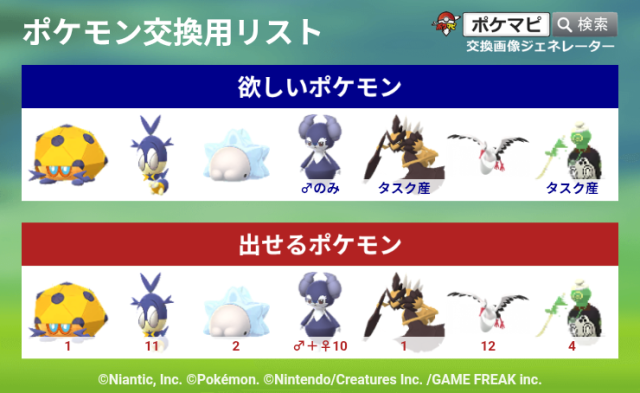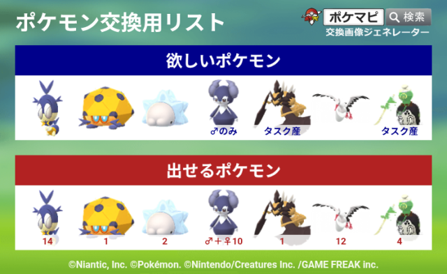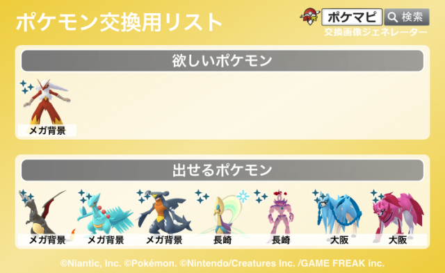 交換対象はポケモン同士のみとし、金銭やプロモーションコードなどポケモン以外の物やサービスを含めることを禁止します。投稿内容に都道府県を含めることで地域検索にヒットしやすくなります。