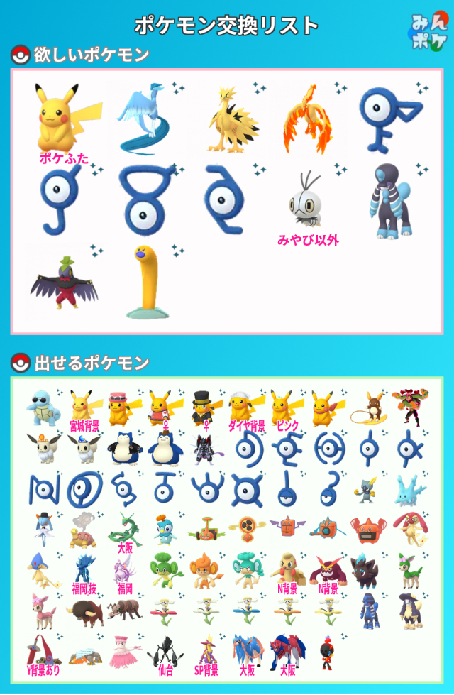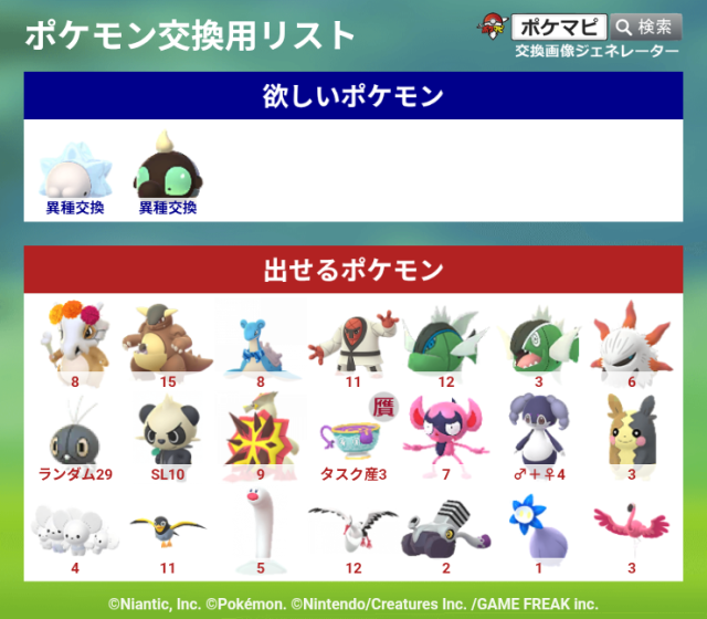 交換対象はポケモン同士のみとし、金銭やプロモーションコードなどポケモン以外の物やサービスを含めることを禁止します。投稿内容に都道府県を含めることで地域検索にヒットしやすくなります。
