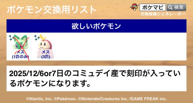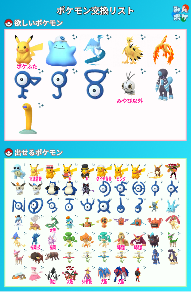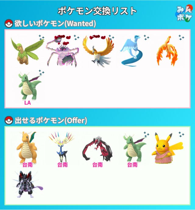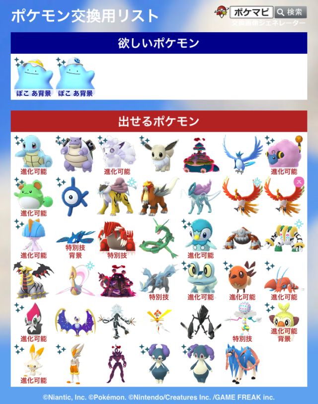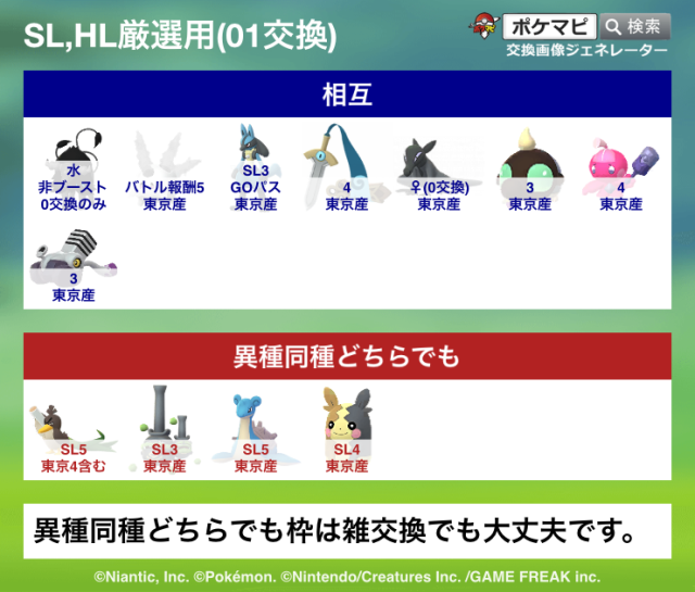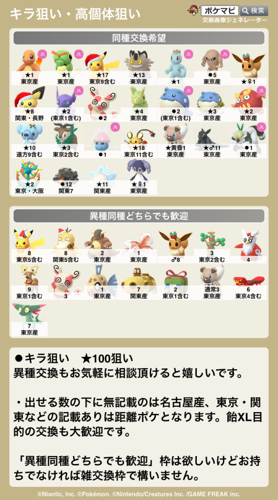 交換対象はポケモン同士のみとし、金銭やプロモーションコードなどポケモン以外の物やサービスを含めることを禁止します。投稿内容に都道府県を含めることで地域検索にヒットしやすくなります。