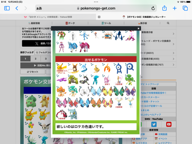 ポケモンGOでポケモンの交換相手を検索・募集するための掲示板です。