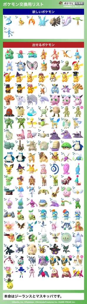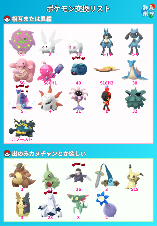 ポケモンGOでポケモンの交換相手を検索・募集するための掲示板です。