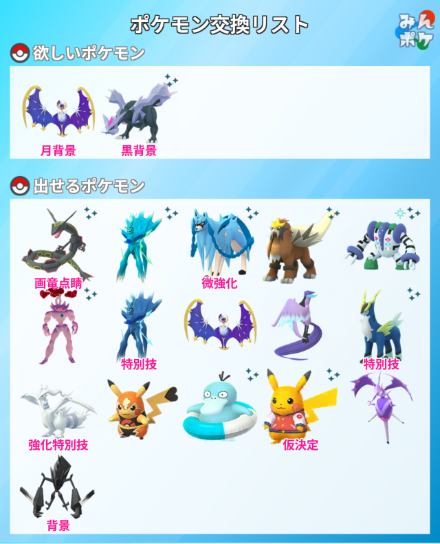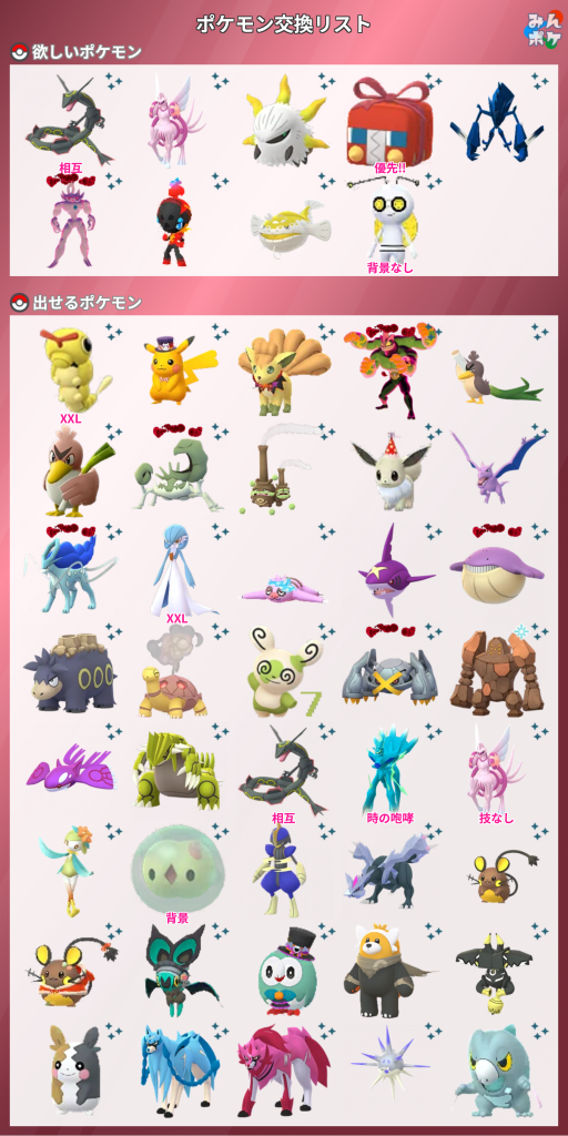 注2 交換までに、当方又は交換者さまのいずれかが希望のポケモンを入手出来た場合は、別のポケモンに変更するか、又は交換キャンセルといたします。