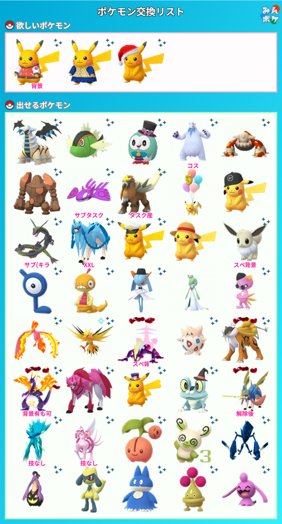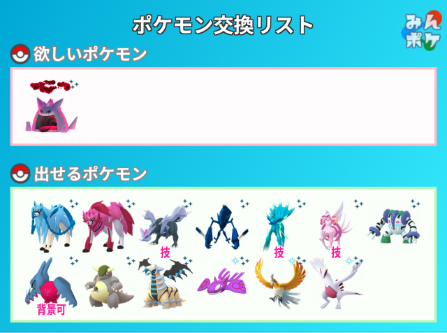 ポケモンGOでポケモンの交換相手を検索・募集するための掲示板です。
