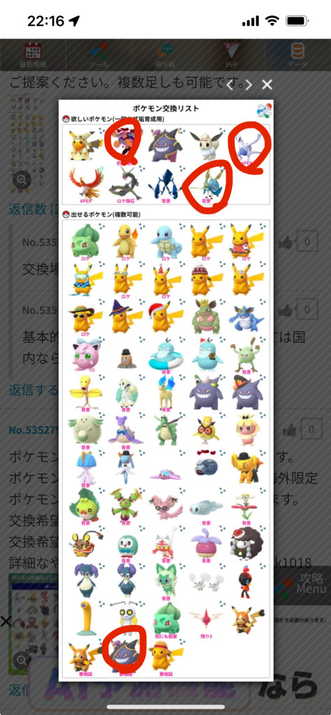 ポケモンGOでポケモンの交換相手を検索・募集するための掲示板です。