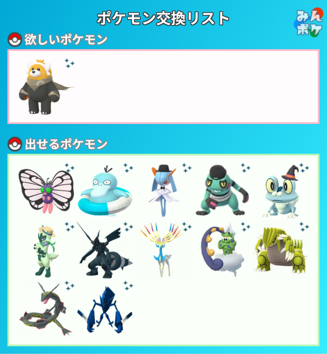 ■異種交換で欲しいポケモン(同種交換に記載のポケモンでも)