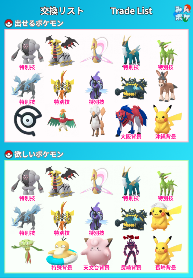 交換対象はポケモン同士のみとし、金銭やプロモーションコードなどポケモン以外の物やサービスを含めることを禁止します。投稿内容に都道府県を含めることで地域検索にヒットしやすくなります。